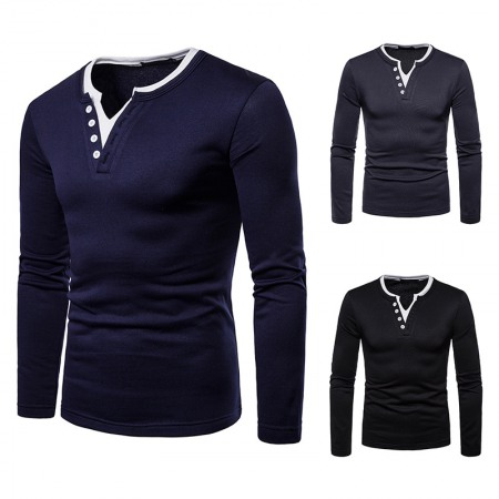Men's Plus Size Plus Velvet Warm Henley Collar Long-Sleeved T-Shirt Bottoming Shirt