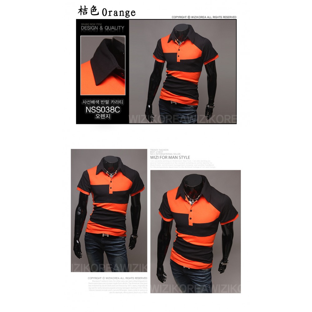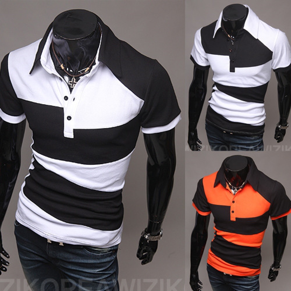 Men's Short-Sleeved Stitching Color Matching Polo Shirt Summer Breathable