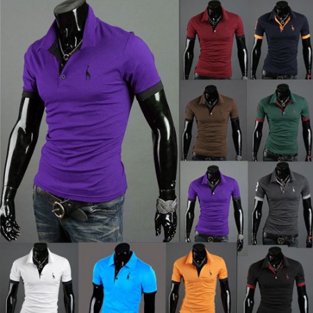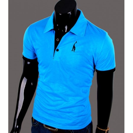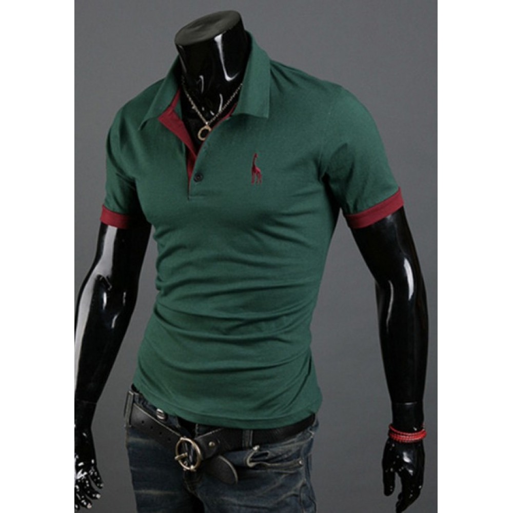 New Casual Men's Short-Sleeved Lapel Shirt Personality Striped Pocket T-Shirt
