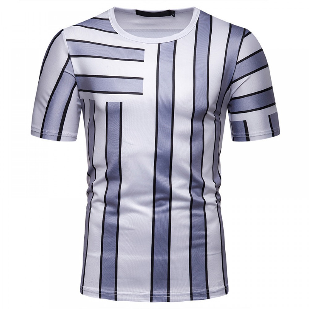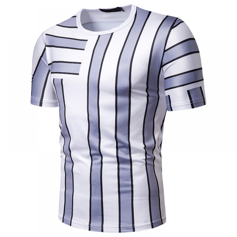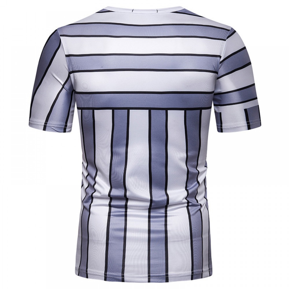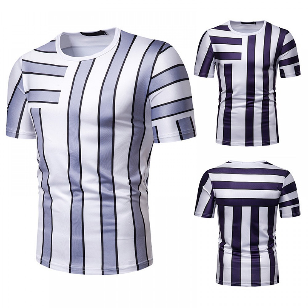 New Summer Men's Short-Sleeved T-Shirt Men's Contrast Striped Slim Casual T-Shirt