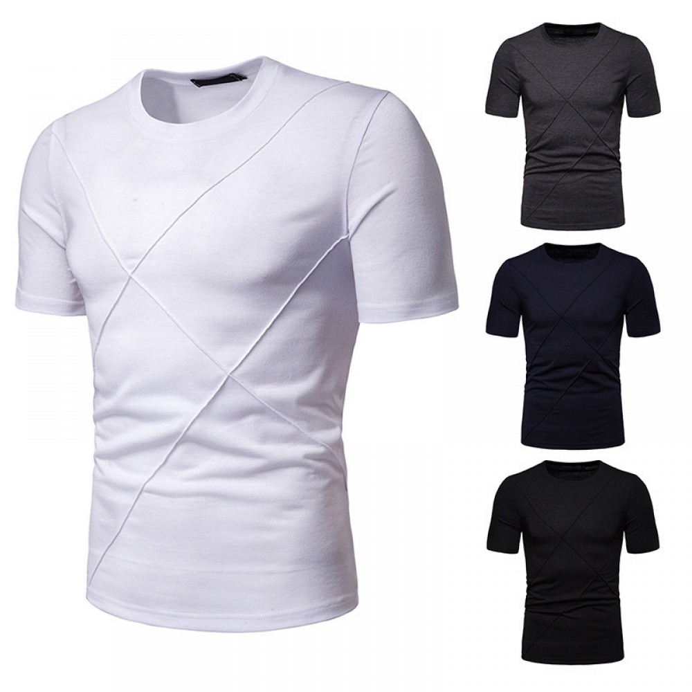 New Summer Men's Short-Sleeved T-Shirt Mens Contrast Striped Slim Casual T-Shirt