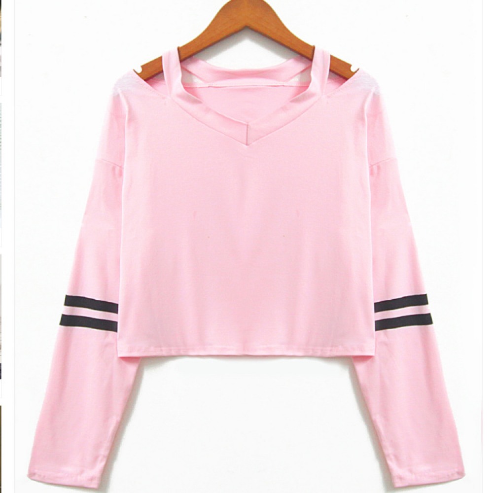 V-Neck Printing Short Long-Sleeved Multicolor T-Shirt